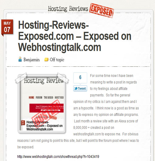 This site started as a way to vent my anger in my scant free time. After launching the one page site and the video, I contacted many of the hosts that appeared in these so called hosting review sites. None of them responded back to me. By the end of December 2007 my anger had long cooled down, and I thought this site would go no where.