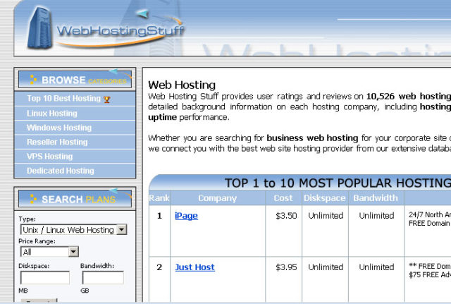 It looks like JustHost.com gets to stay on the top 25 based off of what ever number that webhostingstuff.com is not willing to share with its vistors. But still it does not make sense. So I figured lets try a few others: